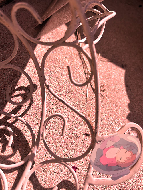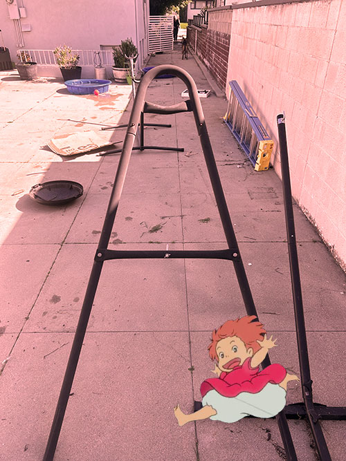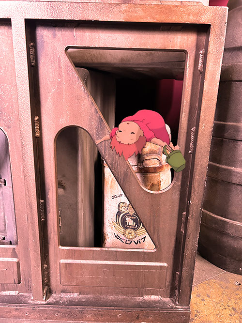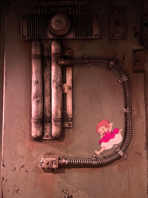Daring Ponyo got up from her nap and ran up and down these pipes, they reminded her of parts of the boat that she was on in the ocean. But she could run on them with her human legs this time.