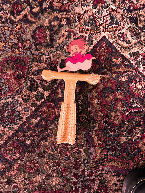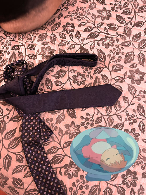 Father of Sosuke wears these things called “ties?” when he goes out with his wife. So cute! Ponyo wants a tie, she’ll wear it as a headband. But first, nap. She’s sleepy again…