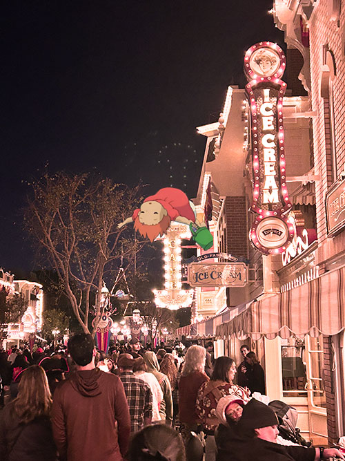 Impatient Ponyo did not want to come down from the sign after eating her double scoop vanilla cone from the Ice Cream Parlor. She fell asleep, again, up there.