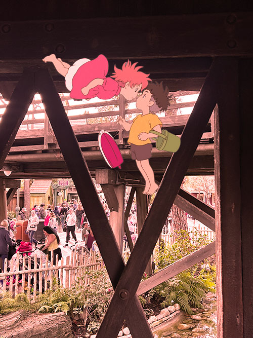 Victoriously, Ponyo found Sosuke! She found him near a creek, he was playing with his little toy boat. They both are so happy and relieved. Yay!