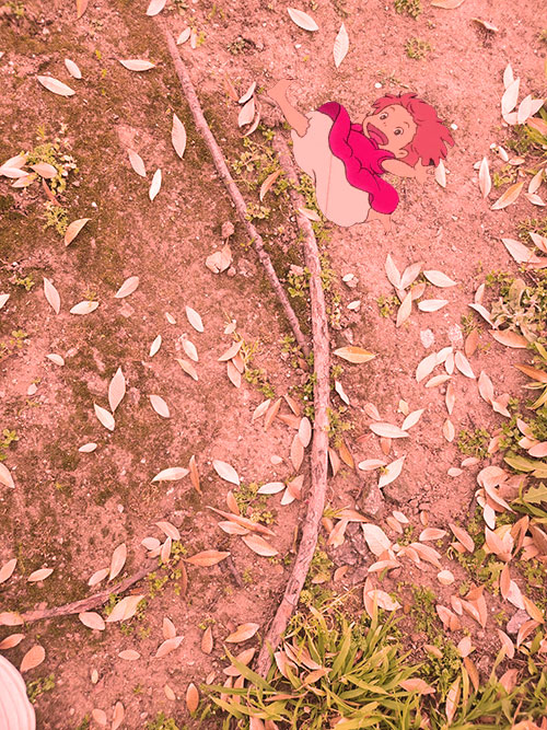 A gust of pink dashes across the cluttered backyard, its Ponyo, she's so excited to see the alphabets, that's was Sosuke calls them atleast. But she doesn't really know what they are, nonetheless, she's ecstatic.